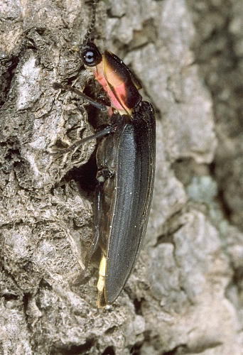 When people see flashing lights in the woods, in a field, or in a marsh, they are looking at fireflies. Worldwide there are over 1900 species of firefly and they are found on every continent except Antarctica. There are over 170 species found in North America alone, with most of them living in the eastern half of the continent. Fireflies are beneficial bugs. Not only are they one of the great wonders of nature, making our summer evenings more exciting, but they are also predators. When they are larvae (not yet adults) fireflies live on slugs, snails, earthworms and many different kinds of destructive insect pests. Firefly larvae hunt by following the trail of an earthworm, snail or slug. After locating their prey, they inject it with an anesthetic (a drug that causes loss of feeling) in order to stop their prey from running away. Then the firefly larvae can easily capture and eat their prey.